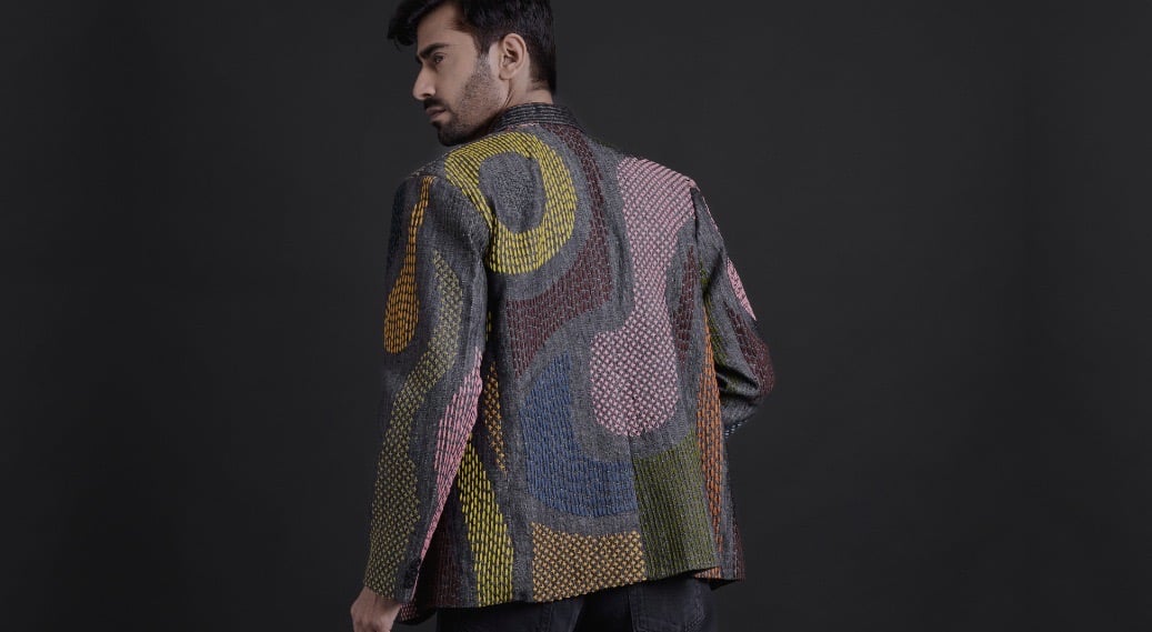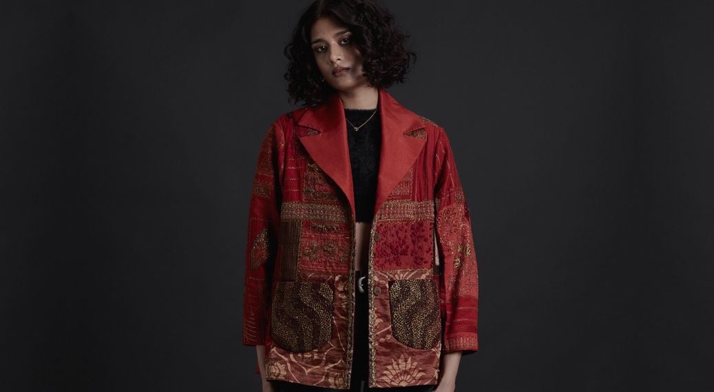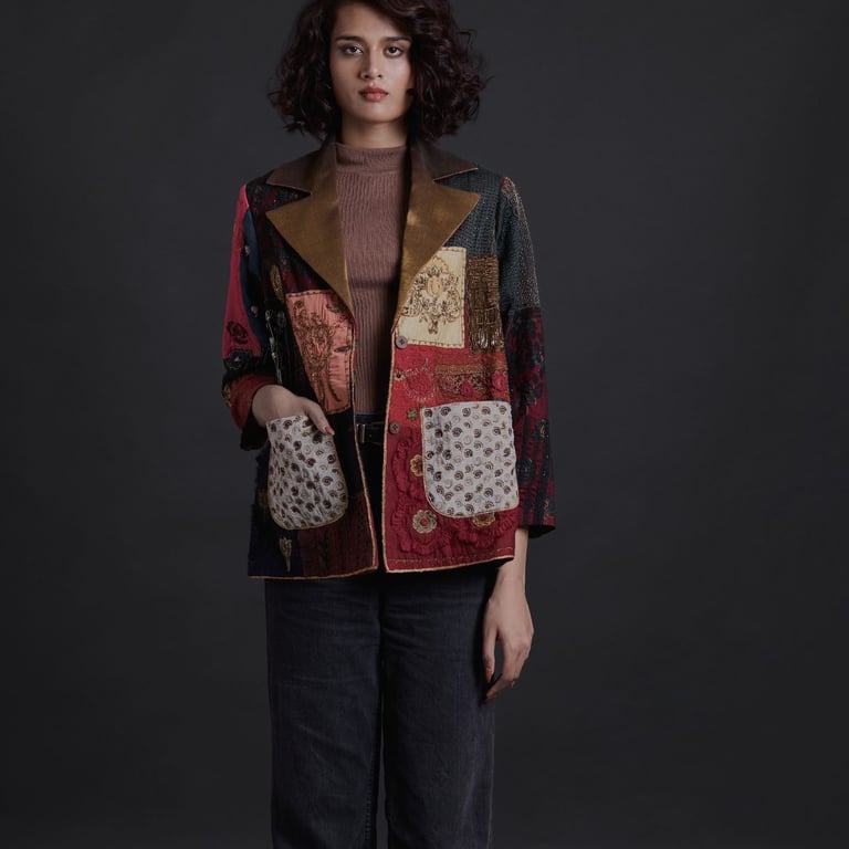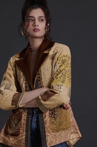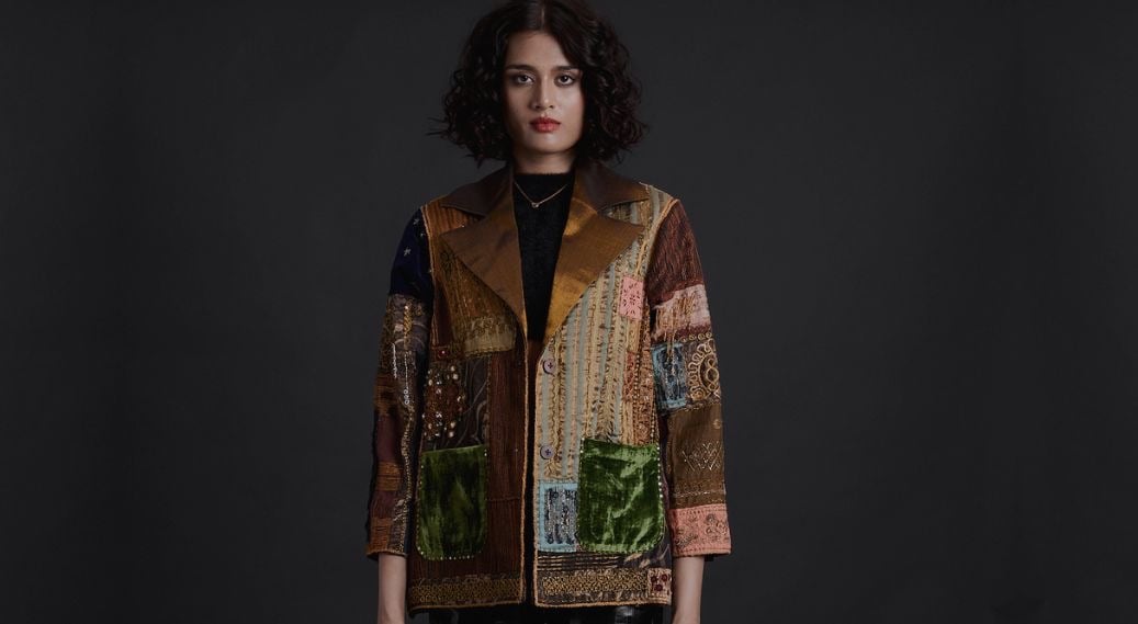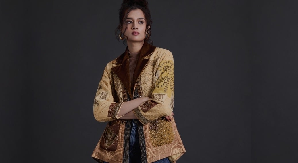 The first Gurkama collection explores textile surfaces through embroidery fragments, layered fabrics, and hand-worked textures.